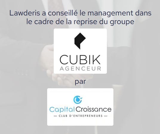 Lawderis a conseillé le management dans le cadre de la reprise du groupe Cubik par Capital Croissance